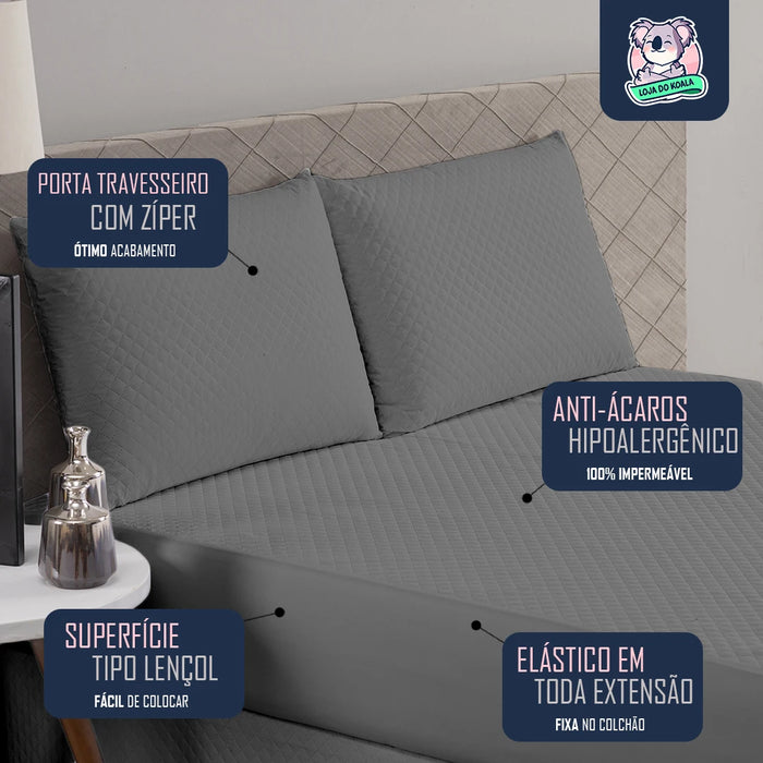 - Tecnologia: 4 camadas (impermeável + anti-ácaro + antibacteriano + respirável)