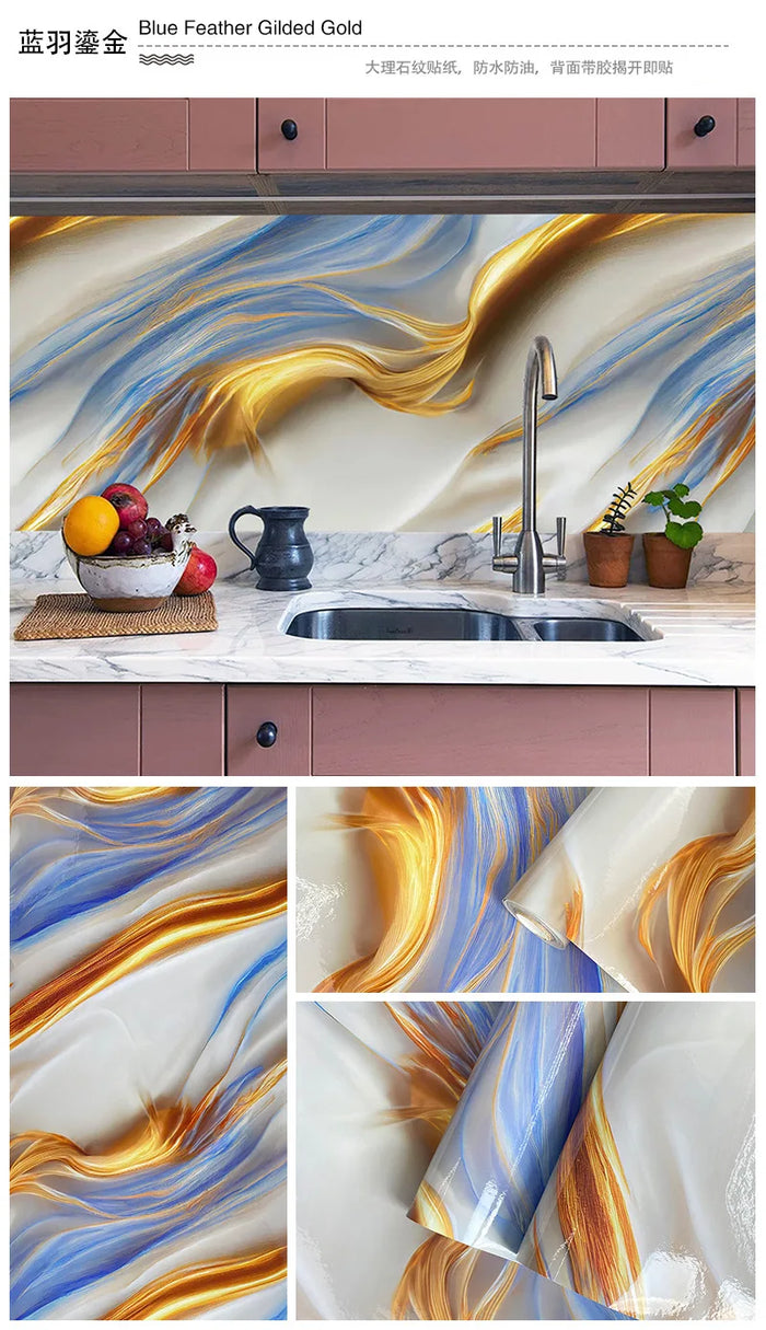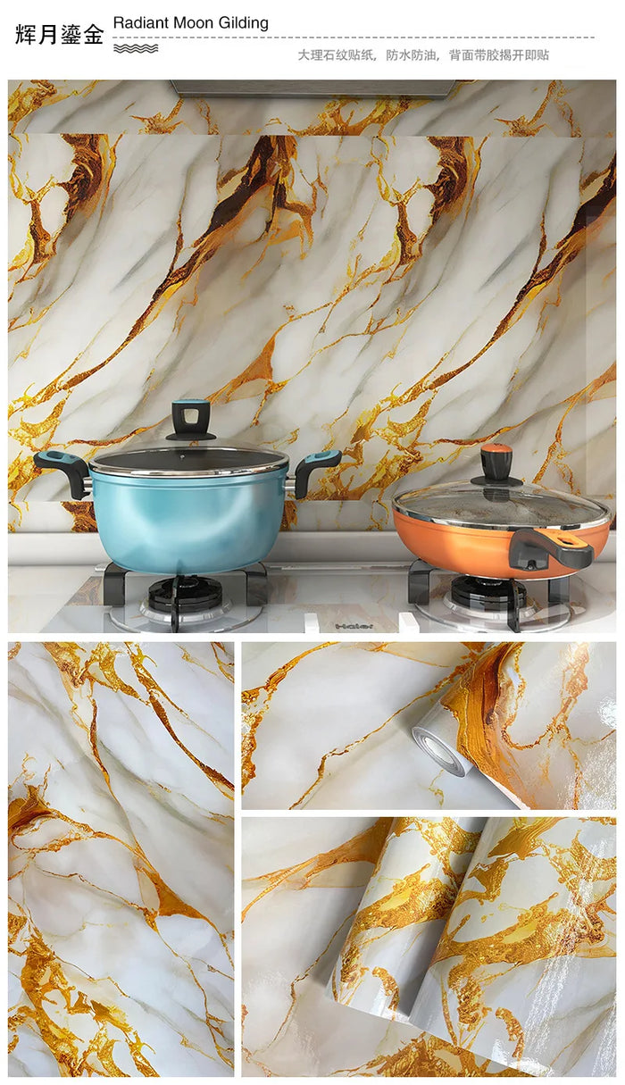 Papel de parede autoadesivo com imitação de mármore dourado para sala de estar, cozinha e banheiro.